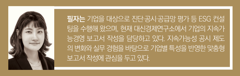 한국지속가능기준위원회(KSSB)는 ISSB 기반 국내 공시기준 초안을 마련했으며, 금융위원회는 ▲주요국 동향 ▲국내 기업 수용가능성 ▲정보 유용성을 고려해 공시 기준과 로드맵을 검토 중이다. 국제 표준 간 정합성 강화와 간소화 흐름은 한국형 공시 기준에도 영향을 미칠 것으로 예상된다. 이에 기업들은 다음 세 가지 방안을 중심으로 공시 체계를 강화할 필요가 있다.